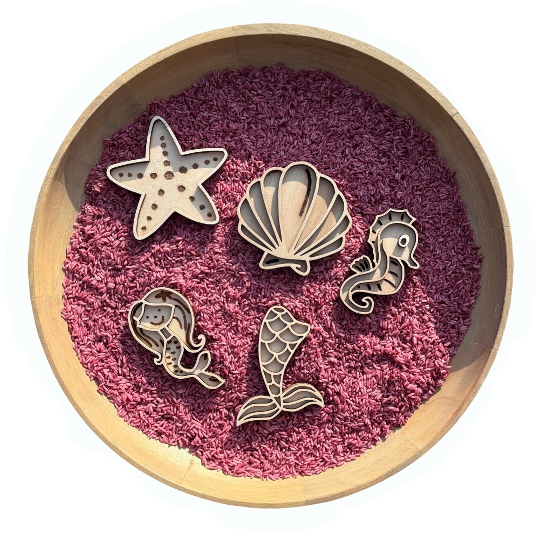 Breid het sensorisch spel uit met onze thematische houten vulvormen. In elke set zitten vijf vormen die perfect passen bij kleine handjes en fantasierijk spel stimuleren. Ideaal om te gebruiken met speelrijst! We bieden ook grotere, losse vulvormen aan voor nog meer variatie en ontdekking. Een leuke én leerzame toevoeging aan elke speeltafel!