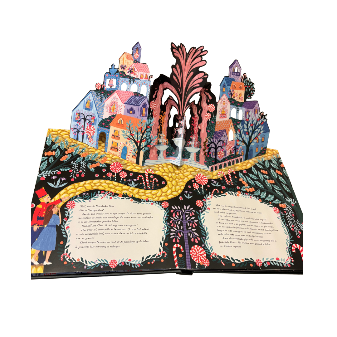 Met 6 ingenieus vormgegeven pagina’s komen de scènes tot leven dankzij de schitterende pop-up illustraties van Zanna Goldhawk. Het boek is ideaal voor kinderen vanaf 5 jaar, maar de magie spreekt alle leeftijden aan. Perfect om tijdens de feestdagen cadeau te doen of samen voor te lezen, terwijl het de tijdloze sfeer van Tsjaikovski’s ballet en de huidige Disneyproducties weerspiegelt.