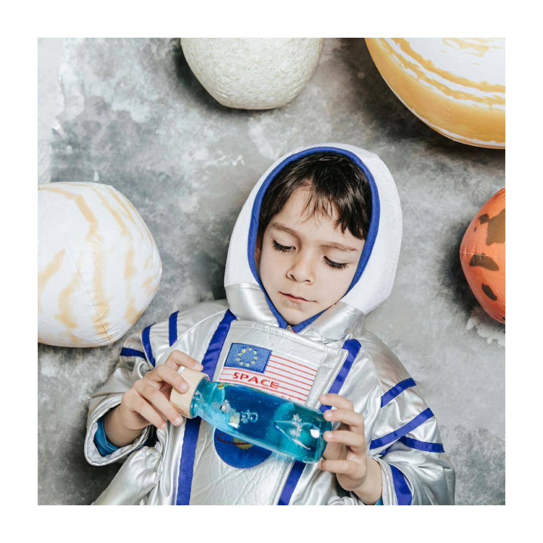 Waarom zouden anderen dit willen hebben? Het is niet alleen een prachtige manier om de verbeelding van kinderen te prikkelen, maar ook om hen te helpen ontspannen. Iedere keer dat je de fles schudt, begint de magie: planeten, astronauten en dieren beginnen te zweven dankzij de speciale vloeistof die de dichtheid verandert.