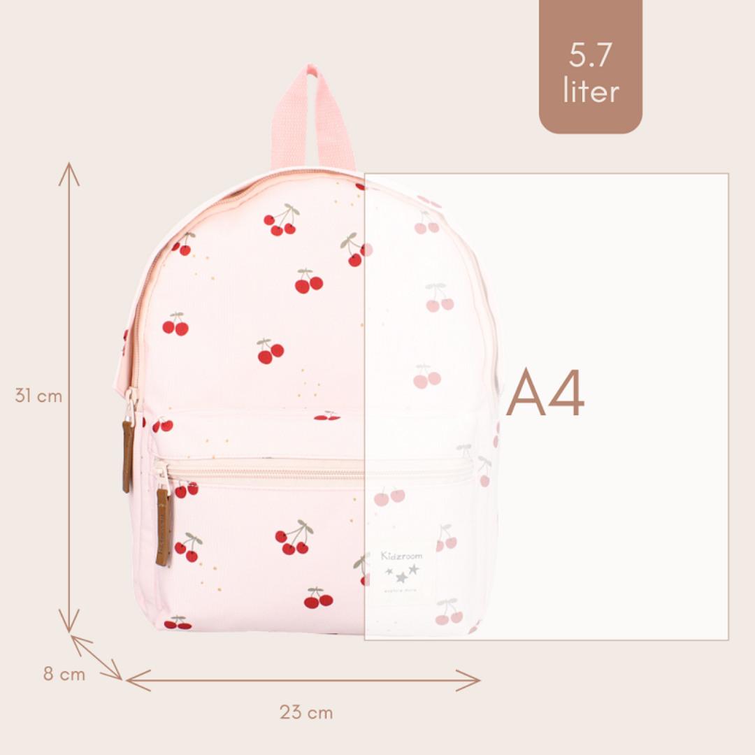 Is dit niet het schattigste rugtasje ooit? Grote kans dat je kindje dit overal mee naartoe wil nemen! Dit roze rugzakje uit de Secret Garden-collectie is vrolijk bedrukt met een speelse kersenprint.