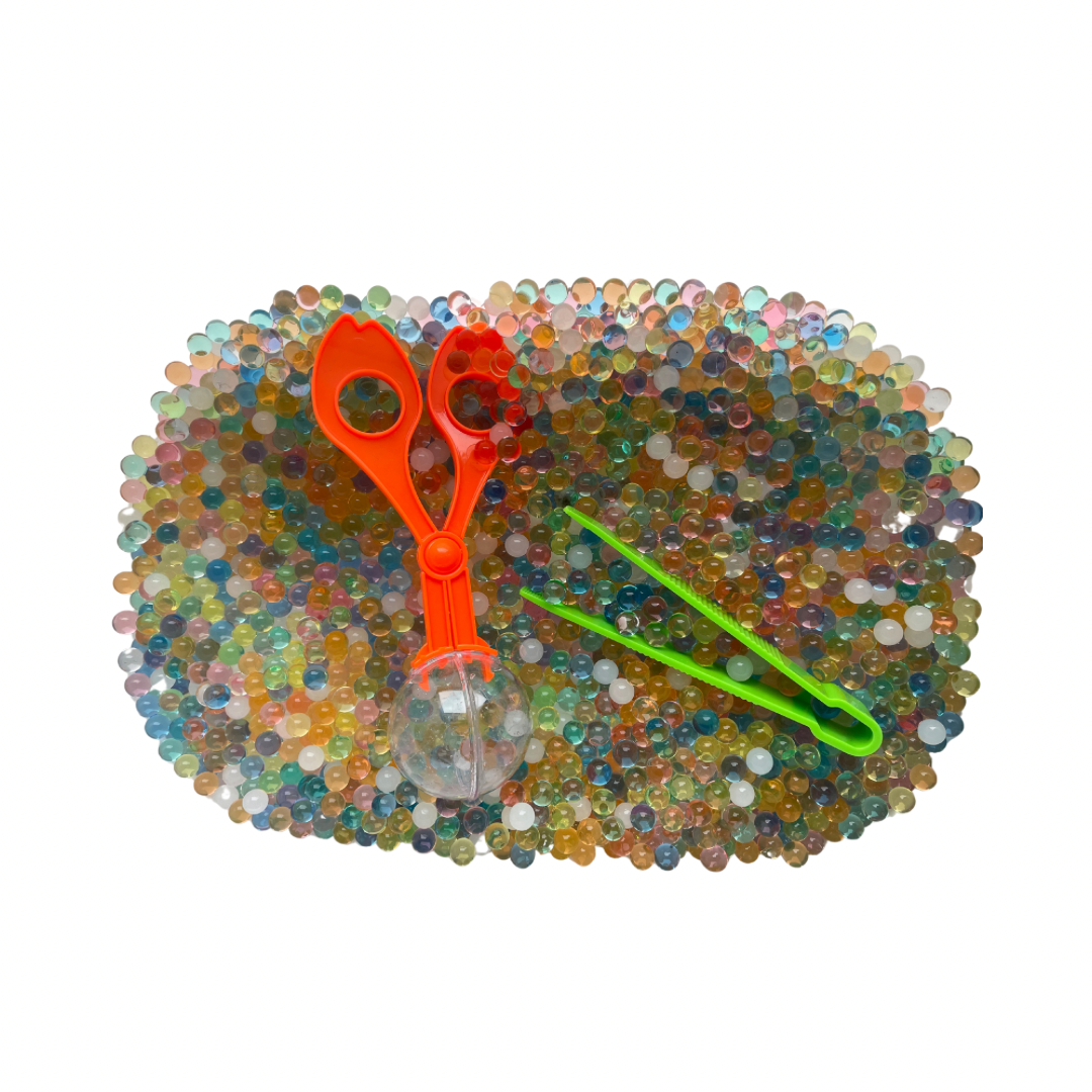 Voeg deze kleurrijke schaar tang en pincet toe aan je sensorische speelset en laat kinderen op een speelse manier leren en ontdekken met waterparels en andere materialen!