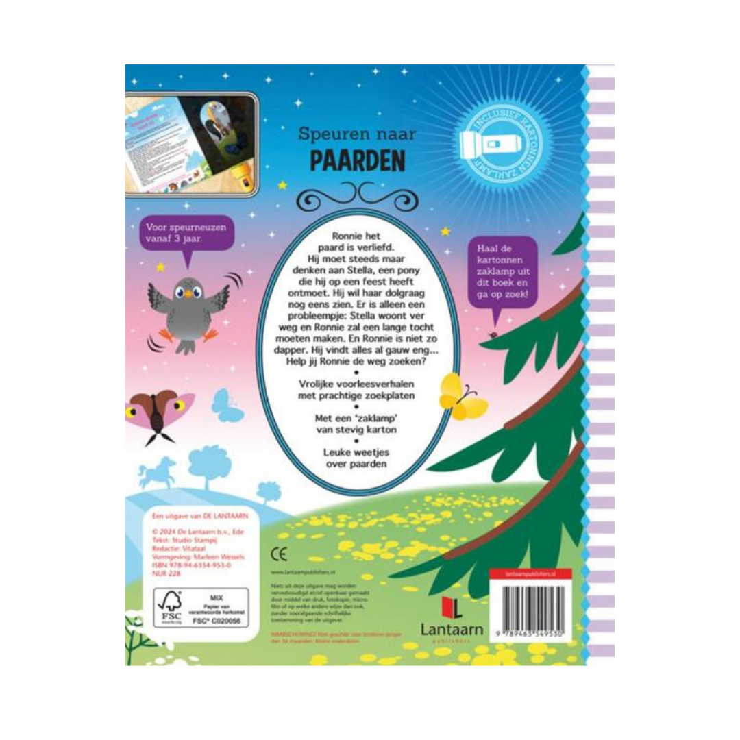 Gebruik de kartonnen zaklamp om op elke pagina verborgen details te ontdekken tijdens Ronnie's avontuur. Een interactief zoek- en voorleesboek vol avontuur, paarden en leerzame weetjes over de wereld van paarden.