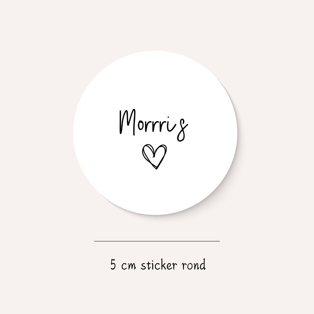 Deze schattige sticker met de naam en een klein hartje is perfect voor elke gelegenheid, van verjaardagen tot de geboorte van een baby! Gebruik ze om cadeautjes, geboortekaartjes of babyspullen te versieren en geef alles een liefdevolle, persoonlijke touch.