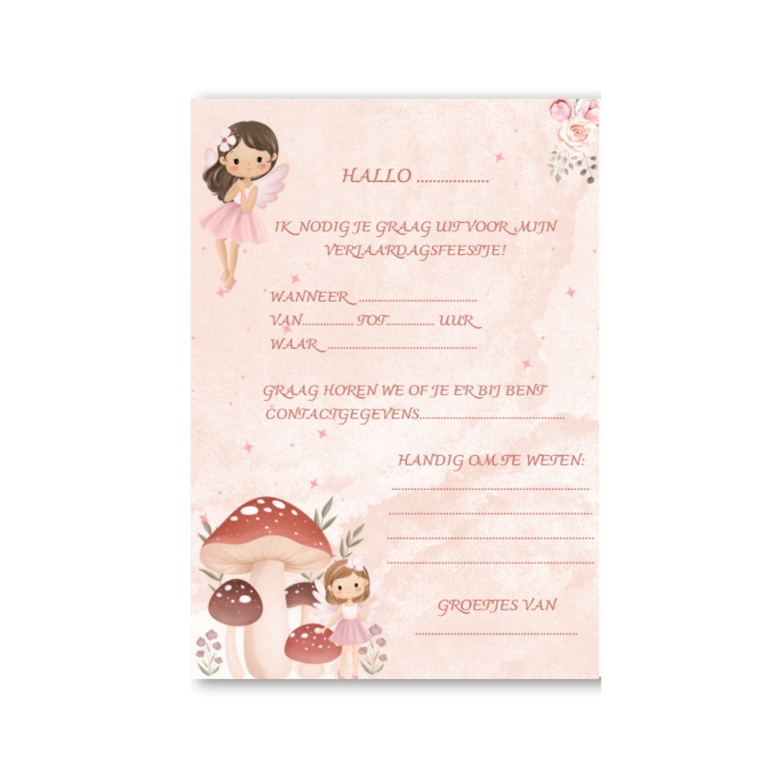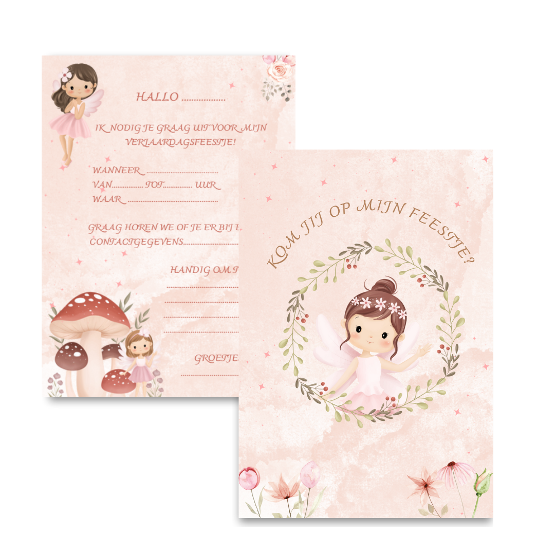 Uitnodigingskaartjes voor kinderfeestjes – Feeën Thema