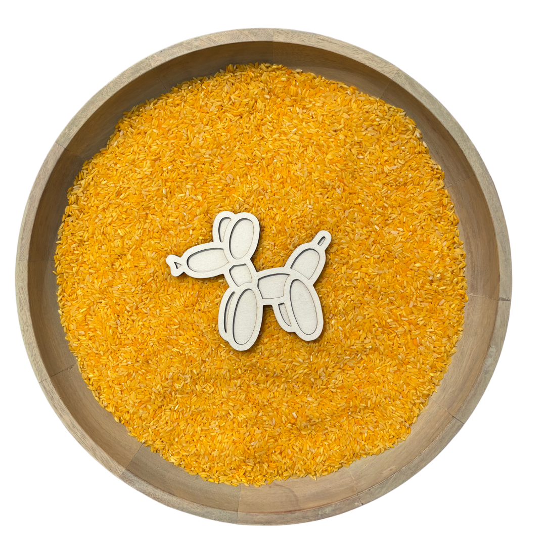 Breng vrolijkheid en creativiteit in het spel van je kind met deze houten vulvorm in de vorm van een ballondier hondje! Met een formaat van 14x11 cm is deze speelse vulvorm perfect voor sensorisch spel met speelrijst, speelzand, klei of andere fijne materialen.